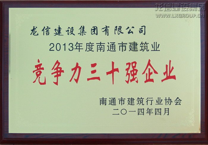2013年度南通市建筑業競爭力三十強企業