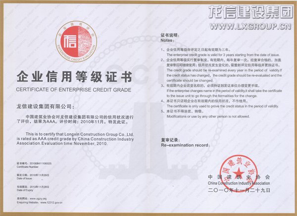 集團公司榮獲建筑業AAA級信用企業榮譽稱號