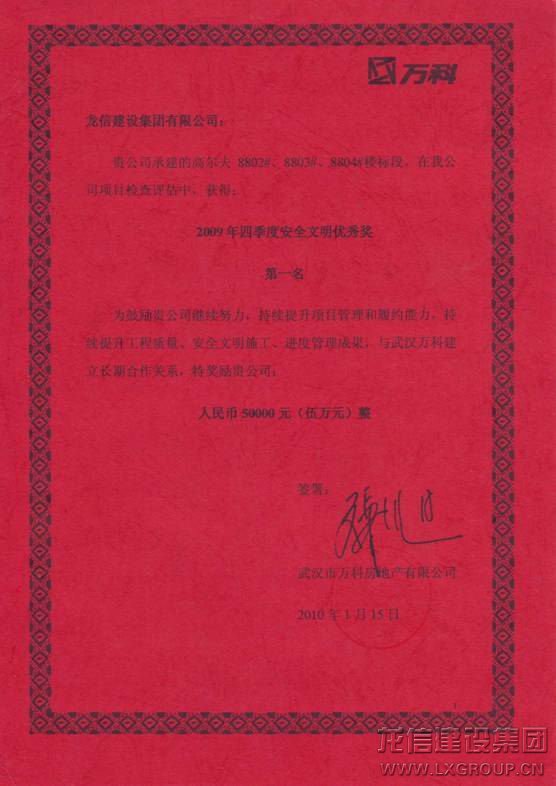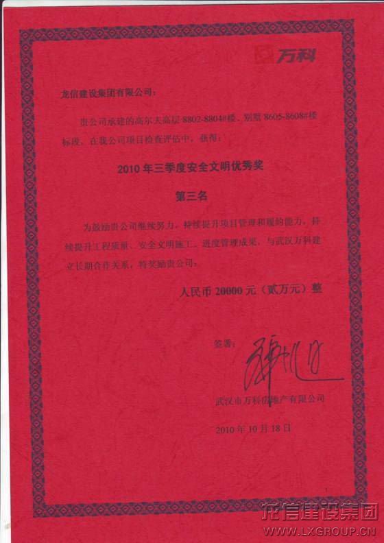 上一篇:龍信集團(tuán)被評(píng)為“2010年度江蘇省優(yōu)秀進(jìn)京施工企業(yè)”