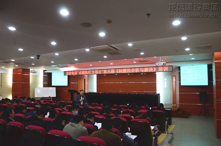 卓越執行力培訓項目第八期《問題的分析與解決》培訓于2015年4月11日在龍信大廈20樓舉辦。集團公司、三分、十一分、十六分、市政園林、設計院、江蘇運杰、中技天峰、龍信物業、機電安裝、錦賢裝飾及鋁合金門窗廠的125位領導及員工參加了此次課程,培訓歷時3小時,取得圓滿成功。