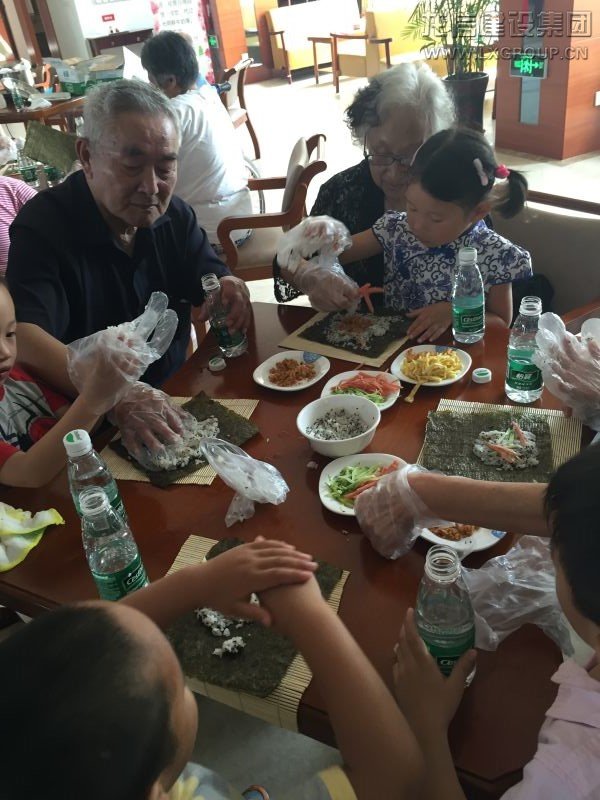 表演結束后,小朋友們用小手牽著爺爺奶奶的手,一起到樂頤薈餐廳制作壽司。他們與爺爺奶奶們圍桌而坐,為爺爺奶奶們捶背按摩,長者們更是拉著孩子們的手,對孩子們寵愛有加,老少同樂。長者與小朋友們分享了親手制作的壽司。看著這其樂融融的場景,我們不禁聯想,善待現在的長者,就是善待以后的自己。