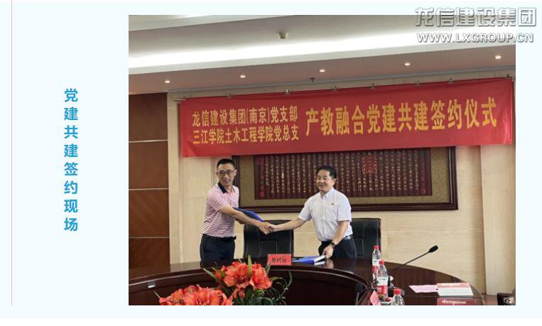 為深入學習貫徹習近平新時代中國特色社會主義思想,切實把黨的二十大精神落實到位,創(chuàng)新基層黨建工作載體,提升產教融合水平,在與三江學院校企合作的基礎上,2023610日下午,龍信集團第一分公司南京黨支部應邀來到三江學院,就校企黨建共建合作事項進行互動交流,確立為黨建結對共建單位,并簽訂結對共建協(xié)議。