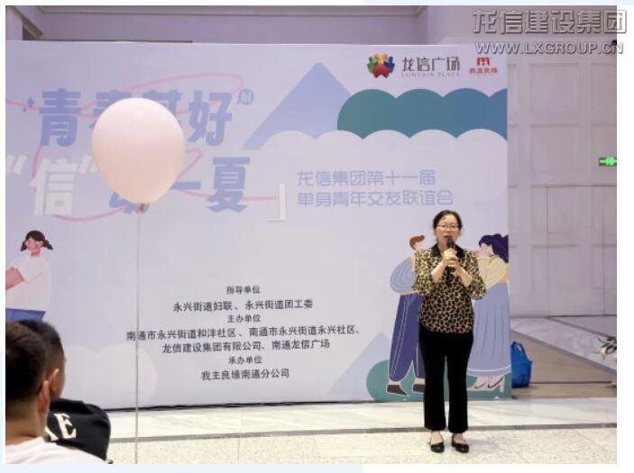 6月17日上午,以“青春甚好,‘信’動一夏”為主題的第十一屆龍信單身青年交友聯誼會在南通龍信廣場舉辦。此次活動由永興街道婦聯、永興街道團工委、龍信建設集團、南通市永興街道和灃社區、南通市永興街道永興社區、我主良緣南通分公司等單位共同協辦,共計30多名單身青年參加了本次聯誼會。